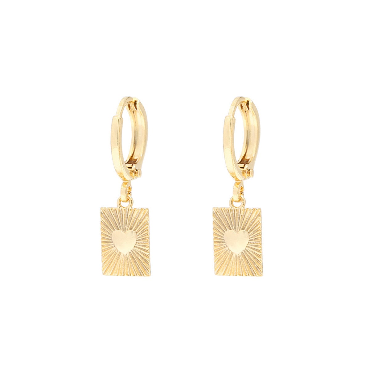 Schattige oorbellen met een rechthoekige bedel en een klein hartje! makkelijk te combinreren met andere leuke Oorbelletjes.