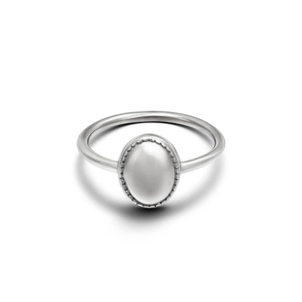 Ring met ovale detail. Verkrijgbaar in zilver en goud.