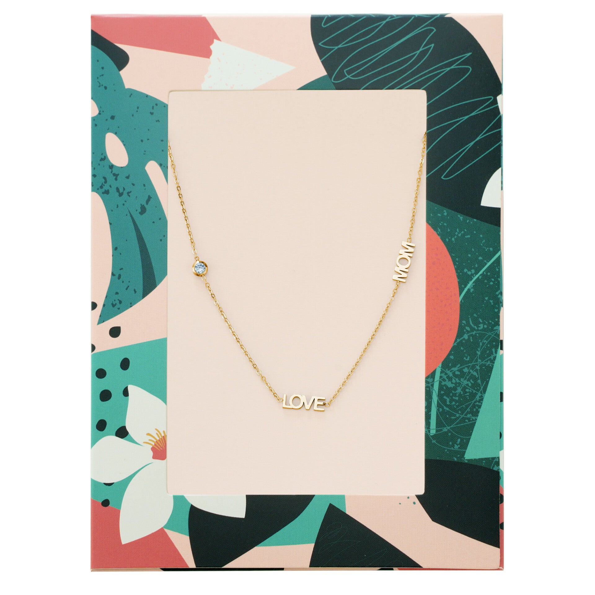 Leuk kettinkje met de tekst i love mom met zirkoon steen als de i.