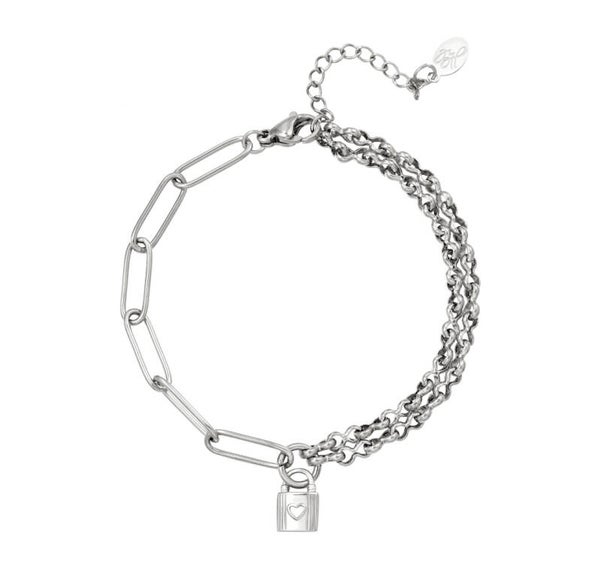 Armbandje met schattig hartjes slotje, met 2 verschillende jasseron!