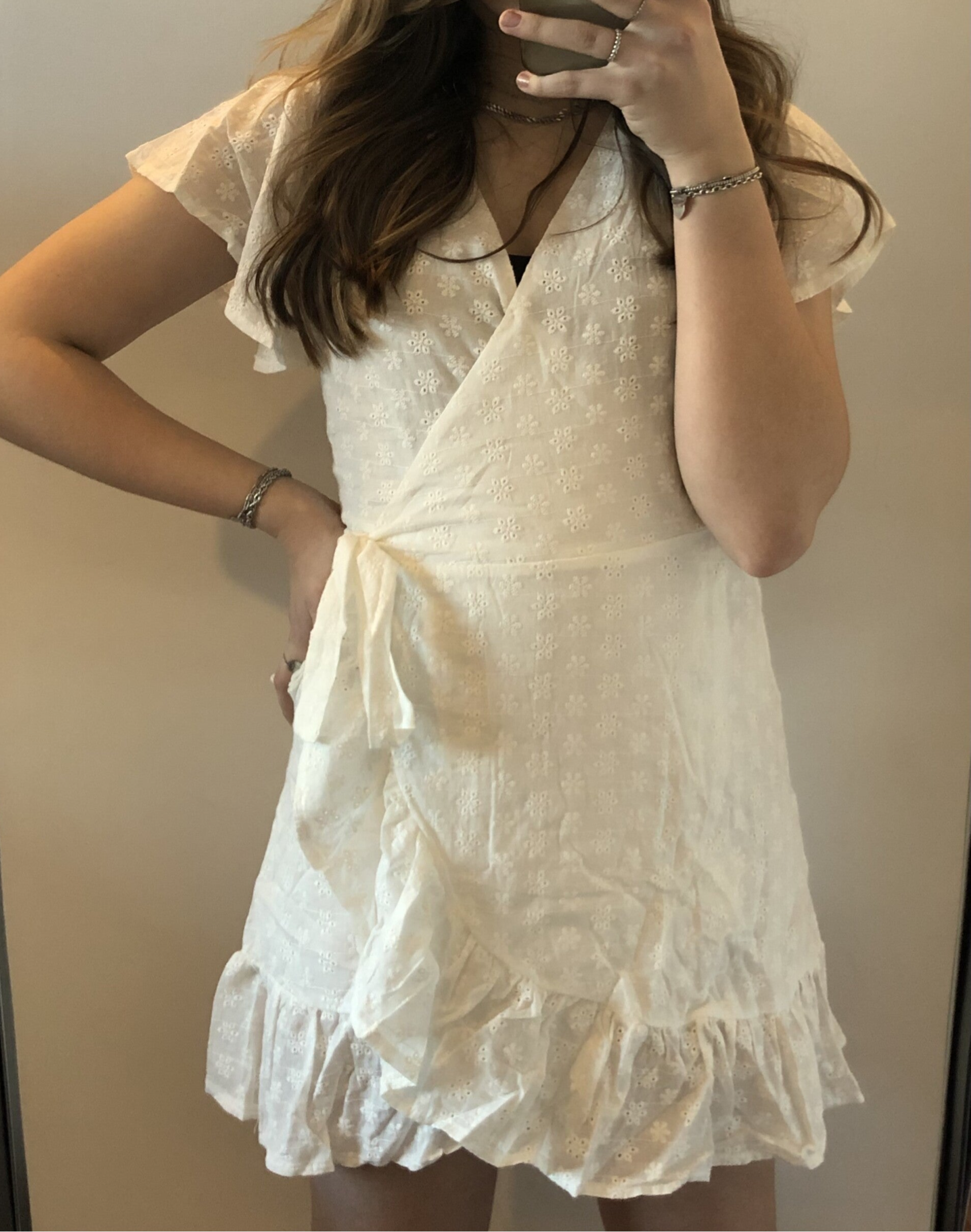 Leuk zomers overslag jurkje van broderie stof! Je kunt hem zelf knopen/overslaan. Ook in het wit beschikbaar, en ook als rokje beschikbaar!!